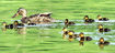 On June 4, baby mallards swim after their mother on the Jungnang Stream in Seoul.
