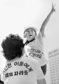 On May 22, 1987, a young girl is lifted up by her mother during a protest in Seoul's Myeongdong District, wearing a t-shirt that says, "I want...