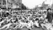 Students spill into the streets in Seoul's central Jongno 5-ga, blocking the traffic with their bodies to demand the overthrow of the military...