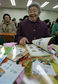 Go Myeong-sun, 86, laughs as she opens the books she was given on February 5, after a ceremony at a special elementary school for adults who are...