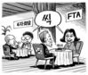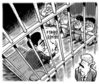 U.S. president George W. Bush looks on as Korean president Roh Moo-hyun, caged with other Koreans, keeps making one concession after another to the...