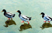 Three ducks walk on the ice of a frozen pond in Seoul, on February 15.