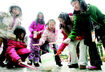 A group of children set about spinning tops at an event in Seoul on January 17 hosted by the National Agricultural Cooperation Federation.