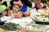 Children make songpyun, the traditional rice cakes eaten at Chuseok, Korea’s harvest festival, at a store in Seoul.