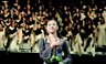 South Korean figure skater Kim Yu-na at the top of the podium after receiving her gold medal at the World Figure Skating Championship in London,...