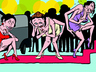 This cartoon depicts South Korean celebrities who attend events in revealing clothing, then try to cover themselves with their hands while passing...
