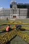Grounds staff outside of Seoul City Hall use flowers to spell the Korean word for “flower” in Seoul Square, Mar. 25. On Mar. 26, the Seoul City...